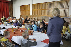 Spotkanie zakończyło się obiadem i wręczeniem upominków dla uczestników. Przyznano również nagrody laureatom konkursu plastycznego promującego "Dekadę działań na rzecz bezpieczeństwa w ruchu drogowym" oraz zorganizowanego przez NSZZ Policjantów konkursu "Moje wspomnienia z obchodów Dnia Dziecka w dniu 11.06.2011 r w Nozdrzcu". Nagrody Wręczał mł.insp. Sławomir Szczupak Zastępca Podkarpackiego Komendanta Wojewódzkiego Policji, Krystyna Stachowska Dyrektor Handlowy Aviva Polska, Teresa Gugała z Aviva Polska, Magdalena Kałamarz - Waisman i Sabina Nawarol ze SKOK Wybrzeże. Nagrodami i upominkami przygotowanymi dla dzieci były plecaki z wyprawką do szkoły oraz przybory szkolne.