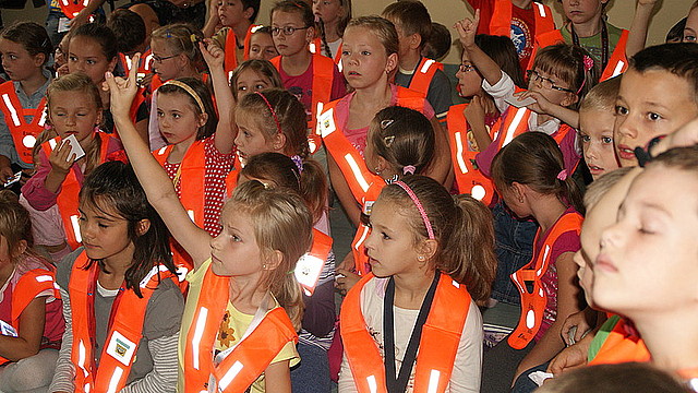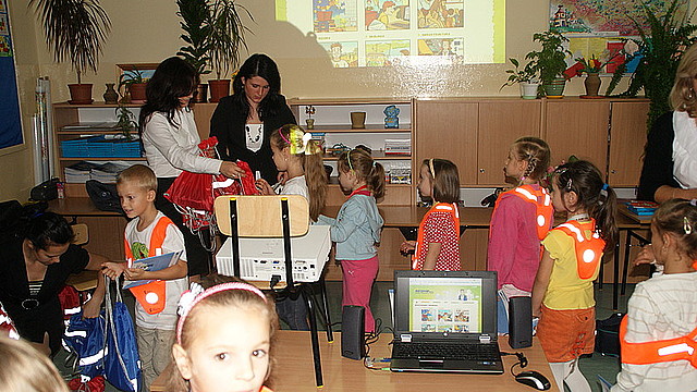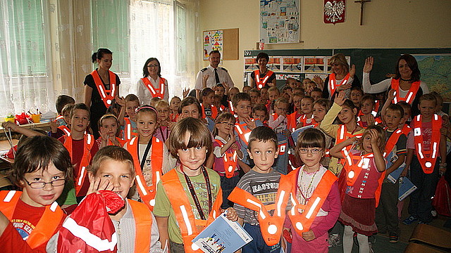 W spotkaniu uczestniczyli też Przedstawiciele Sieci Punktów Informacyjnych Funduszy Europejskich woj. podkarpackiego, którzy przekazali uczniom kamizelki i plecaki z elementami odblaskowymi. Upominki trafiły do dzieci dzięki współpracy z Urzędem Marszałkowskim Województwa Podkarpackiego.