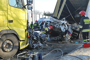 Do wypadku doszło około godz. 7.30 w Boguchwale na drodze krajowej nr 9. Ze wstępnych ustaleń wynika, że zderzyły się dwa tiry i cztery samochody osobowe. Kierowca ciężarówki jadący w kierunku Rzeszowa prawdopodobnie nie wyhamował i uderzył w stojące na światłach dwa samochody osobowe przygniatając je do drugiej ciężarówki, która pchnięta uderzyła w stojące przed nią dwa inne samochody osobowe. W zgniecionych między tirami seacie i peugeocie zginęły trzy osoby, dwóch mężczyzn i kobieta. Seatem ibizą podróżowały dwie osoby, 24-letni kierowca i 19-letnia pasażerka. W peugeocie zginął 33-letni kierowca.