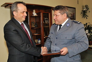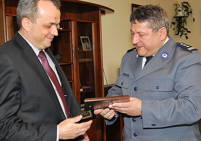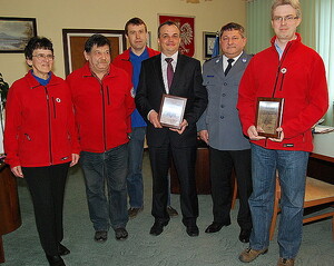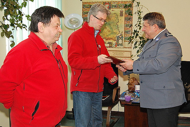 Inspektor Stopczyk podziękował również przedstawicielom STORAT-u. Grawerton odebrał prezes stowarzyszenia Marcin Marek. Towarzyszyli mu Marta Gutowska, Jan Jarosiński i Tomasz Maciejewski. STORAT od lat wspiera Policję w poszukiwaniach zaginionych.