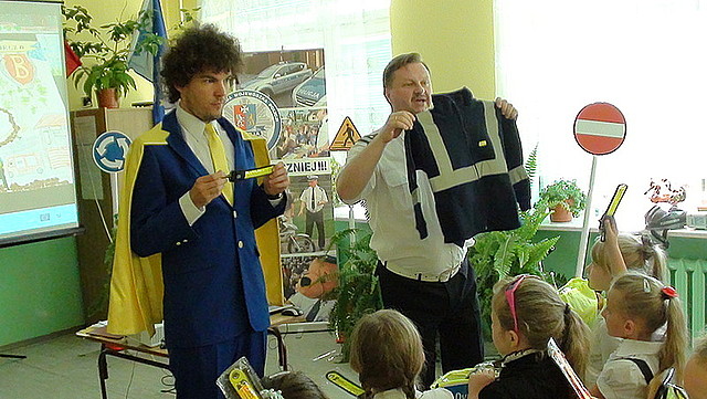 Podczas zajęć dzieci wykazały się znajomością przepisów na temat przepisów ruchu drogowego, a także bardzo trafnie odpowiadały na trudne pytania, które zadawał policjant i Euroman.