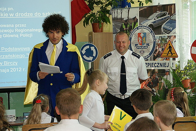 Wczoraj w Szkole Podstawowej im. mjr H. Dobrzańskiego "Hubala" w Birczy odbyła się lekcja na temat Funduszy Europejskich dotycząca bezpieczeństwa w ruchu drogowym. Lekcja ta została przeprowadzona przez policjantów Wydziału Ruchu Drogowego KWP w Rzeszowie i Maksymiliana Europejskiego - głównego bohatera portalu dla dzieci i młodzieży o Funduszach Europejskich www.euroman.gov.pl.