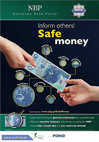 Narodowy Bank Polski i Policja przygotowali kampanię informacyjną „Bezpieczne pieniądze. Podaj dalej”. Akcja ma na celu zapewnienie bezpiecznego obrotu pieniężnego w czasie Mistrzostw Europy w Piłce Nożnej UEFA Euro 2012. Polakom chcemy przypomnieć, a kibiców i turystów z zagranicy zaznajomić z wizerunkami i zabezpieczeniami polskich banknotów. Podczas kampanii będziemy także propagować zasady bezpiecznego korzystania z kart płatniczych i bankomatów.