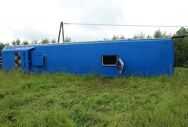 Do zdarzenia doszło około godz. 12.30 w Woli Rafałowskiej. Ze wstępnych ustaleń wynika, że kierowca wycieczkowego autokaru, przewożącego uczniów liceum z województwa mazowieckiego, zahaczył o pobocze, zjechał do rowu i przewrócił się na bok. W autokarze jechało około 40 osób. Początkowo nikt nie skarżył się na żadne urazy. Jednak po godzinie, niektórzy uczniowie narzekali na bóle głowy, barków. Na miejsce skierowano karetki pogotowia, które przewiozły do szpitali na badania dziewięć osób. Po badaniach wszyscy wrócili do domu.