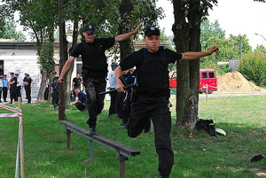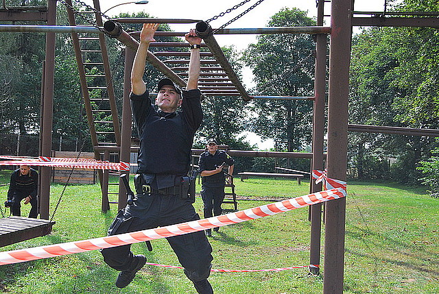 Każdy z zawodników rozwiązywał 60 zadań testowych z zakresu wiedzy policyjnej. Kolejną konkurencją był policyjny tor przeszkód rozegrany w ośrodku sprawności fizycznej. Policjanci parami pokonywali ruchomą kładkę, drewniany płot o wysokości 1,6 metra, rów szeroki na 2,2 metra, płot z siatki drucianej o wysokości 1,5 metra oraz drewnianą kładkę. Tor przeszkód należało pokonać jak najszybciej, policjanci "walczyli" z przeszkadmi i czasem wyposażeni tak jak do codziennej służby patrolowej.