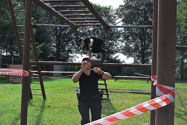 Pierwszą konkurencją, rozegraną na strzelnicy myśliwskiej w Borze koło Głogowa Małpolskiego, było dynamiczne strzelanie z broni służbowej. Po zakończeniu tej konkurencji policjanci i oceniająca ich komisja sędziowska (w role sędziów wcieli się oficerowie Wydziału Prewencji Komendy Wojewódzkiej Policji w Rzeszowie) przemieścili się do Zaczernia, do siedziby Oddziału Prewencji Policji.
