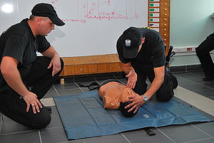 Na koniec każdy oceniany patrol musiał prawidłowo udzielić pierwszej pomocy przedmedycznej ofierze wypadku. Sędziowie oceniali, czy policjanci właściciwie ocenili zdarzenie, czy prawidłowo zabezpieczyli miejsce wypadku i czy wezwali pomoc medyczną, czy wybrali właściwe miejsce do prowadzenia działań ratujących życie, czy wreszcie skutecznie prowadzili resuscytację rannego.