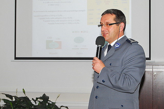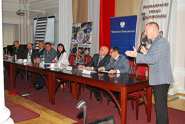 Druga część seminarium odbyła się w Sali Kolumnowej Podkarpackiego Urzędu Wojewódzkiego. Podczas tego spotkania insp. Grzegorz Jach przedstawił "Założenia programu Profilaktyka a Ty". Więcej na temat programu tutaj. Następnie pplk. Ing. Miroslav Vasilko przedstawił "Zmiany w przepisach prawnych na Słowacji". "Psychologiczne aspekty zachowań w ruchu drogowym wpływające na bezpieczeństwo", to kolejny z tematów, poruszanych podczas seminarium. Omówiła go mgr Marta Dobrzyńska - psycholog Zakładu Psychologii Transportu i Fizjologii Instytutu Transportu Samochodowego. Następnie uczestnicy wysłuchali wystąpienia insp. Andrzeja Sabika, Zastępcy Podkarpackiego Komendanta Wojewódzkiego Policji, który przedstawił "Podsumowanie współpracy międzynarodowej w zakresie poprawy bezpieczeństwa i realizacji programów profilaktyczno-edukacyjnych". O instytucjach pozarządowych, działających na rzecz poprawy bezpieczeństwa w ruchu drogowym mówił Jan Jędrzejko - Wiceprezes Zarządu Okręgowego w Rzeszowie Polskiego Związku Motorowego, a Marek Poręba - Sekretarz Podkarpackiej Wojewódzkiej Rady Bezpieczeństwa w Ruchu Drogowym omówił realizację programów rządowych na rzecz bezpieczeństwa w ruchu drogowym na terenie województwa podkarpackiego.