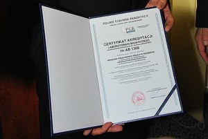 Akredytacja ważna jest do 2016 roku. Restrykcyjna procedura wymaga corocznego sprawdzenia działalności laboratorium przez ekspertów z Polskiego Centrum Akredytacji.