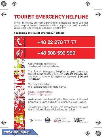 1 czerwca rusza Telefon Bezpieczeństwa dla turystów, który w tym roku został po raz pierwszy zintegrowany z Polskim Systemem Informacji Turystycznej. W godzinach 8.00-18.00, a od 1 czerwca do 30 września w godzinach 08:00-22:00 turyści zagraniczni będą mogli uzyskać potrzebne informacje oraz pomoc w sytuacjach wymagających specjalistycznej porady. Pracownicy obsługujący Contact Center będą posługiwać się biegle językiem angielskim, niemieckim i rosyjskim.