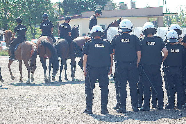 Podczas dzisiejszego egzaminu konie jeźdźcy współdziałali z policjantami Oddziału Prewencji Policji w Rzeszowie.