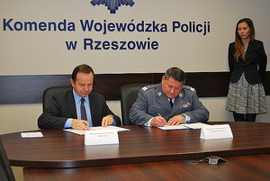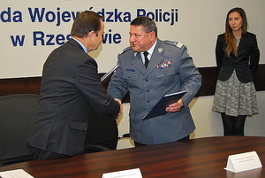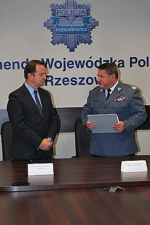 Dziś w Komendzie Wojewódzkiej Policji w Rzeszowie Marszałek Województwa Podkarpackiego Władysław Ortyl i Podkarpacki Komendant Wojewódzki Policji nadinspektor Zdzisław Stopczyk podpisali umowę, na mocy której Zarząd Województwa Podkarpackiego przekaże 80 tysięcy złotych na pokrycie kosztów adaptacji zawodowej policjantów.