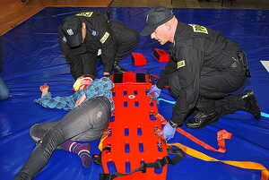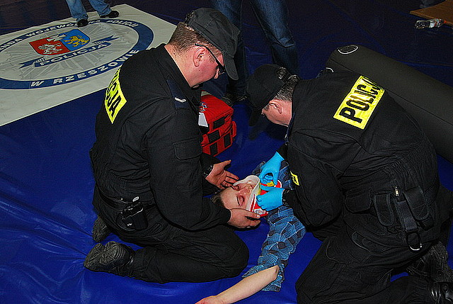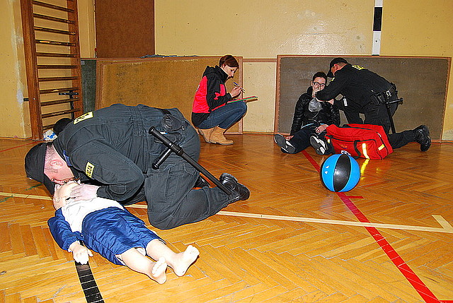 Kolejne konkurencje były bardziej widowiskowe, policyjne pary musiały przeprowadzić dwie interwencje połączone z udzielaniem pierwszej pomocy. Ratowali ofiary wypadku drogowego oraz interweniowali w mieszkaniu, gdzie zastali dwie ranne osoby. Sędziowie przyznawali punkty za to, czy policjanci właściwie ocenili zdarzenie, czy prawidłowo zabezpieczyli miejsce wypadku i czy zapewnili bezpieczeństwo rannym. Oceniane było też badanie funkcji życiowych ofiar wypadku, skuteczne prowadzenie resuscytacji i postępowanie po ewentualnym przywróceniu czynności życiowych.