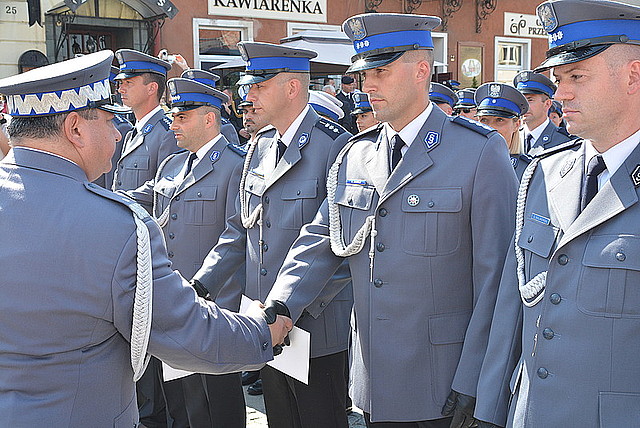 Awanse na wyższe stopnie służbowe odebrało 1140 policjantów - 20 w korpusie oficerów starszych, 52 w korpusie oficerów młodszych, 628 w korpusie aspirantów, 418 w korpusie podoficerów i 22 w korpusie szeregowych.