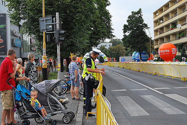 Od rana policyjne patrole kierowały ruchem na skrzyżowaniach z odcinkami dróg i ulic wyłączonych na czas wyścigu. Wskazywali kierowcom objazdy. Podczas przejazdu kolumny wyścigu dbali, by kibice nie wbiegali na jezdnie.