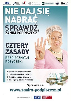 Chociaż maksymalne nominalne oprocentowanie pożyczek wynosi obecnie 12 procent, to wiele firm pożyczkowych oferuje produkty, których rzeczywista roczna stopa oprocentowania może przekraczać tysiące procent. Dlatego też nierozważne podpisanie umowy o „szybką i łatwą pożyczkę” może prowadzić do utraty dorobku całego życia i rodzinnych dramatów. Stąd kolejna odsłona akcji społecznej „Nie daj się nabrać. Sprawdź, zanim podpiszesz!”.