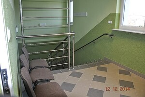 Przebudowa obejmowała również adaptację pomieszczeń garażowych w parterze budynku na pokoje biurowe, szatnie i umywalnie dla funkcjonariuszy, pom. gospodarcze, WC dla osoby niepełnosprawnej.