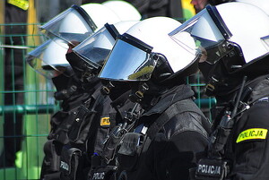 Interwencja zwartych pododdziałów Policji wobec agresywnego tłumu na trybunach stadionu w Tarnobrzegu była motywem przewodnim ćwiczeń, w których wzięli udział policjanci Oddziału Prewencji Policji w Rzeszowie oraz Nieetatowego Pododdziału Policji Komendy Wojewódzkiej Policji w Rzeszowie.