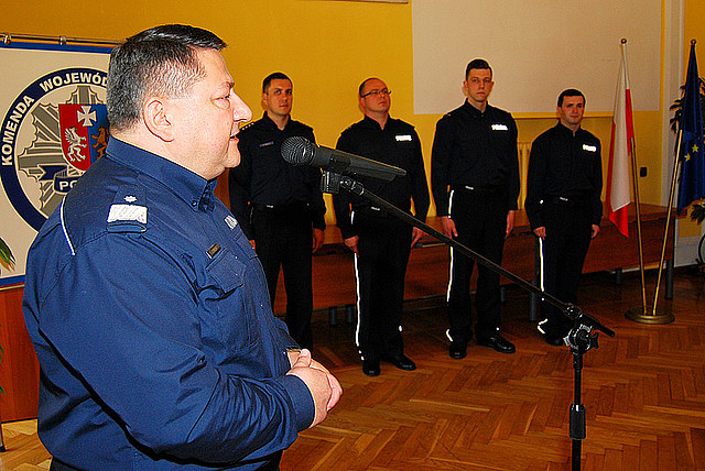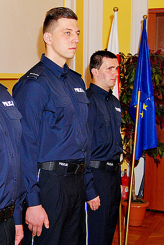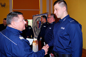 Obu policjantów uhonorował też naczelnik Wydziału w Rzeszowie Biura Spraw Wewnętrznych KGP młodszy inspektor Ryszard Jemioło. Z jego rąk policjanci otrzymali pamiątkowe tablice z tytułem "Uczciwością odważni". Ten honorowy tytuł jest oznaką uznania dla wzorowej postawy w służbie.