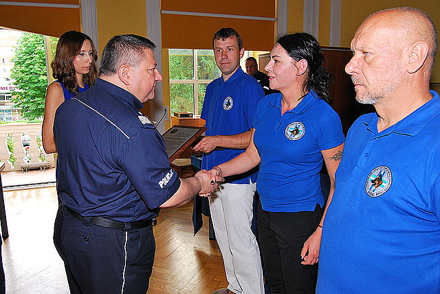Podkarpacki Komendant Wojewódzki Policji, nadinspektor Zdzisław Stopczyk podziękował dziś uroczyście za niezawodną i skuteczną współpracę ratownikom Stowarzyszenia Cywilnych Zespołów Ratowniczych z Psami STORAT. Podczas odprawy kadry kierowniczej podkarpackiej Policji wręczył ratownikom pamiątkowe tabliczki.