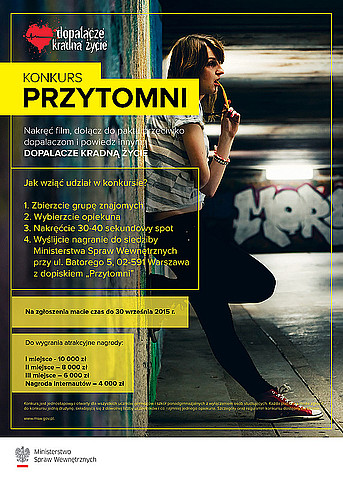 Nie pozwólmy dopalaczom niszczyć naszego życia! Jeśli nie tolerujesz kradzieży, bandytyzmu i kłamstwa oraz tak samo jak my nie godzisz się na dopalacze, weź udział w konkursie MSW pn. „Przytomni”. Nakręć spot, powiedz wszystkim, że „Dopalacze kradną życie” i wygraj dla swojej szkoły atrakcyjne nagrody!