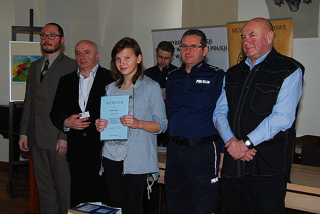 Zwycięzcy konkursu zostali wyłonieni w połowie listopada, a wczoraj wraz ze swoimi opiekunami pojawili się w refektarzu Muzeum Okręgowego w Rzeszowie. Nagrody i okolicznościowe dyplomy wręczali: insp. Andrzej Sabik - Zastępca Komendanta Wojewódzkiego Policji w Rzeszowie, Jacek Wojtas - Podkarpacki Kurator Oświaty, Adam Koszela - Zastępca Dyrektora Regionalnego Ośrodka Polityki Społecznej w Rzeszowie oraz Jan Krawiec z Zespoł Szkół Plastycznych w Rzeszowie. Nagrodę specjalną wręczył Dyrektor Muzeum Okręgowego w Rzeszowie Bogdan Kaczmar.