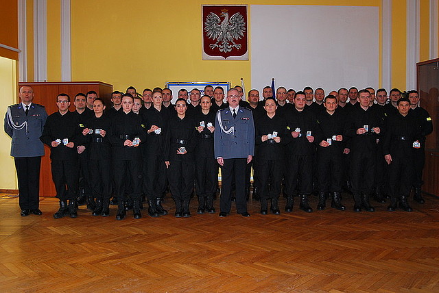 Nowo przyjęci funkcjonariusze odebrali legitymacje służbowe z rąk p.o. Komendanta Wojewódzkiego Policji w Rzeszowie insp. Piotra Michny, który zwrócił się do nich słowami: "Jest takie powiedzenie, że najdalsza droga zaczyna się od pierwszego kroku. I Wy dzisiaj wykonujecie ten pierwszy krok w Waszym zawodowym życiu..."