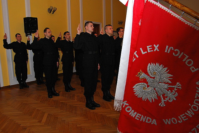 Trzydziestu ośmiu nowo przyjętych policjantów złożyło dziś ślubowanie w Komendzie Wojewódzkiej Policji w Rzeszowie. Odbierając legitymacje z rąk insp. Piotra Michny wzięli na siebie obowiązki i trudy związane z policyjną służbą. Za kilka dni wszyscy wyjadą do szkół policji, by odbyć szkolenie podstawowe.