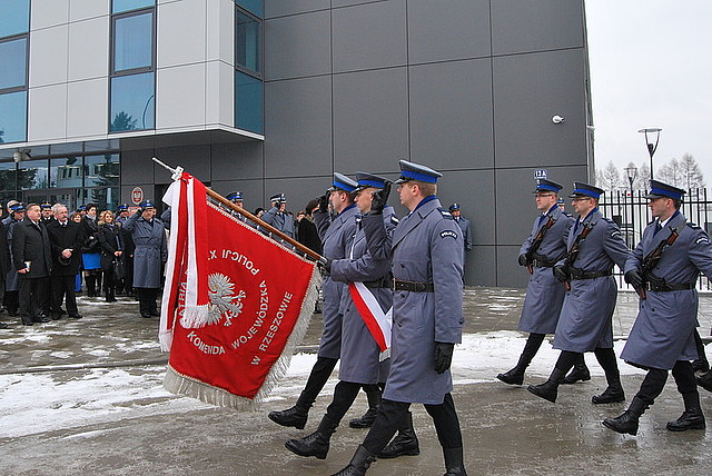 Dzisiaj odbyło się uroczyste otwarcie nowo wybudowanej siedziby Komendy Powiatowej Policji w Łańcucie. Ceremonię rozpoczęło złożenie meldunku nadinsp. Cezaremu Popławskiemu - Zastępcy Komendanta Głównego Policji przez dowódcę uroczystości. Przy dźwiękach hymnu państwowego wciągnięto flagę na maszt. Gości przybyłych na uroczystość otwarcia przywitał Komendant Wojewódzki Policji w Rzeszowie insp. dr Krzysztof Pobuta. Komendant przybliżył historię powstania nowej siedziby łańcuckiej policji. Dziękował osobom zaangażowanym w tą inwestycję.