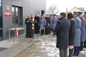 Poświęcenie nowego budynku i uroczyste przecięcie wstęgi, poprzedziło prezentację pomieszczeń komendy.