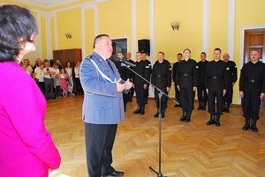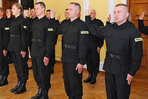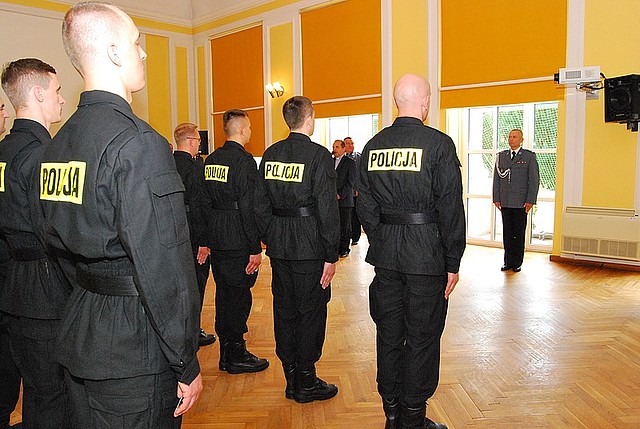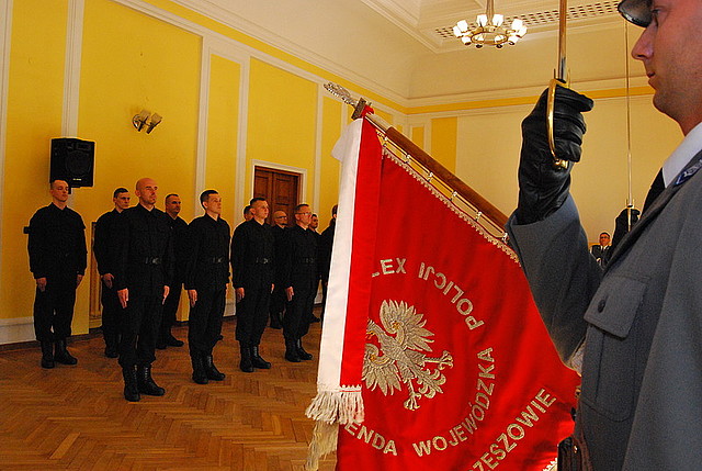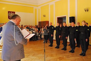 Dwudziestu dwóch nowo przyjętych policjantów złożyło dziś ślubowanie w Komendzie Wojewódzkiej Policji w Rzeszowie. Wypowiadając słowa roty ślubowania wzięli na siebie obowiązki i trudy związane z policyjną służbą. Legitymacje wręczył nowym funkcjonariuszom komendant wojewódzki insp. dr Krzysztof Pobuta. Za kilka dni wszyscy wyjadą do szkół policji, by odbyć szkolenie podstawowe.