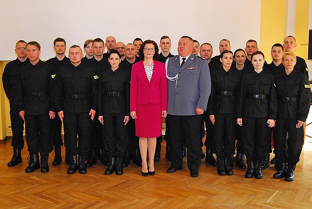 Dziś w Komendzie Wojewódzkiej Policji w Rzeszowie, podczas uroczystego apelu, takie ślubowanie złożyło dwudziestu dwóch nowo przyjętych policjantów, wśród nich 6 kobiet. Legitymacje służbowe odebrali z rąk insp. dr. Krzysztofa Pobuty - komendanta wojewódzkiego. Gratulacje i życzenia przekazała młodym funkcjonariuszom Wojewoda Podkarpacki Ewa Leniart. W ceremonii uczestniczyli również komendanci miejscy i powiatowi policji, naczelnicy wydziałów Komendy Wojewódzkiej Policji w Rzeszowie oraz bliscy nowo przyjętych policjantów.