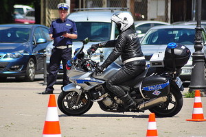 Uczestnicy konkursu wykazywali się również umiejętnością jazdy służbowym motocyklem. Każdy z nich miał za zadanie pokonanie toru przeszkód w jak najkrótszym czasie i z jak najmniejszą liczbą błędów.