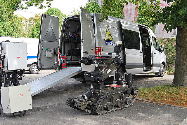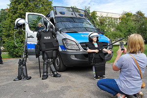 Na policyjnych stoiskach funkcjonariusze zaprezentowali robota pirotechnicznego oraz sprzęt wykorzystywany w pracy przez policyjnych antyterrorystów. Policjanci z oddziału prewencji pomagali dzieciom przymierzyć strój ochronny.