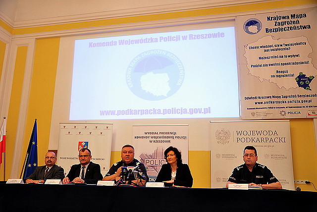 Dziś, w obecności władz wojewódzkich i samorządowych, Komendant Wojewódzki Policji w Rzeszowie zainaugurował przedsięwzięcie pod nazwą "Krajowa Mapa Zagrożeń Bezpieczeństwa". Interaktywna mapa jest już dostępna na stronie internetowej podkarpackiej Policji. Każdy, może przekazać policjantom informacje o miejscach i zdarzeniach, które w jego odczuciu są niebezpieczne. Wszystkie zgłoszenia zostaną sprawdzone.