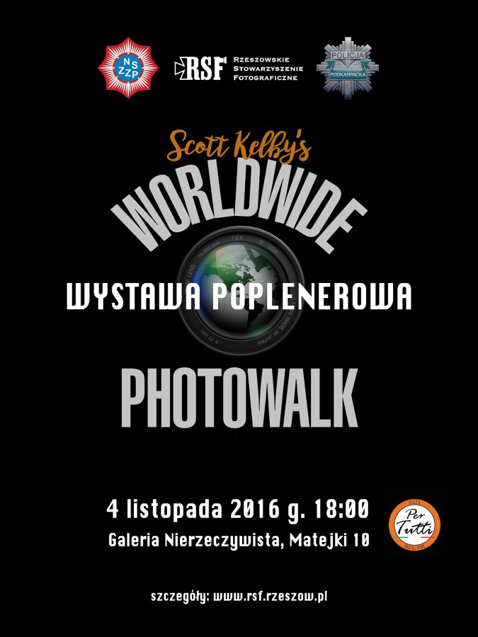 Wernisaż wystawy odbędzie się w najbliższy piątek 4 listopada o godzinie 18.00 w Galerii Nierzeczywistej RSF, przy ul. J. Matejki 10 w Rzeszowie. Na niezwykłej podsumowującej wystawie zaprezentowane zostaną prace uczestników tegorocznego pleneru fotograficznego "Scott Kelby's Worldwide Photo Walk", który odbył się w sobotę 1 października br. na ulicach Rzeszowa. Sponsorem wydruku wystawy jest NSZZ Policjantów.