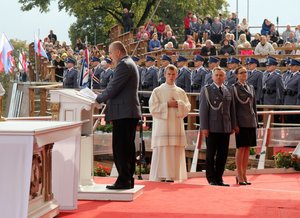 Po raz XVI spotkamy się tutaj w uroczystość św. Michała Archanioła patrona Policji. Stając w Częstochowie, składamy hołd poległym policjantom i pomordowanym funkcjonariuszom Policji Państwowej. Te nasze spotkania na stałe zapisały się w kalendarzu i są okazją do integracji środowiska policyjnego. W codziennej służbie nie ma wiele czasu na refleksję. Pielgrzymując pokazujemy nasze przywiązanie do wartości duchowych. Polacy cenią sobie spokój, bezpieczeństwa i poszanowanie prawa. Nasza służba wymaga oddania i poświęcenia i swój głęboki sens znajduje w rocie ślubowania. Święty Jan Paweł II mówił: „musicie od siebie wymagać, nawet gdy inni od was nie wymagają”. Mam nadzieję, że pielgrzymka pomoże odnaleźć sens służby, która w ostatecznym rozrachunku jest służbą dla bliźnich.
