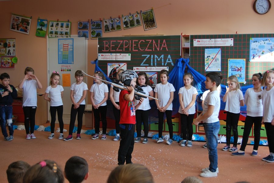 Dzieci dla policjantów przygotowały program artystyczny pn. "Bezpieczna zima", podczas którego zaprezentowały jak bezpiecznie należy się zachować podczas ferii zimowych.