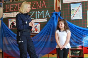 Funkcjonariusze zwracali uwagę również na to, jak najmłodsi mają się zachowywać podczas zabaw na podwórku, w domu, a w szczególności jak poruszać się po drodze i na przejściu dla pieszych. Kom. Monika Hędrzak przypomniała także o przestrzeganiu zasad bezpieczeństwa podczas zabaw w czasie ferii, a w szczególności na stoku. Przypomniano także numery telefonów alarmowych i sytuacje, w jakich należy z nich korzystać.