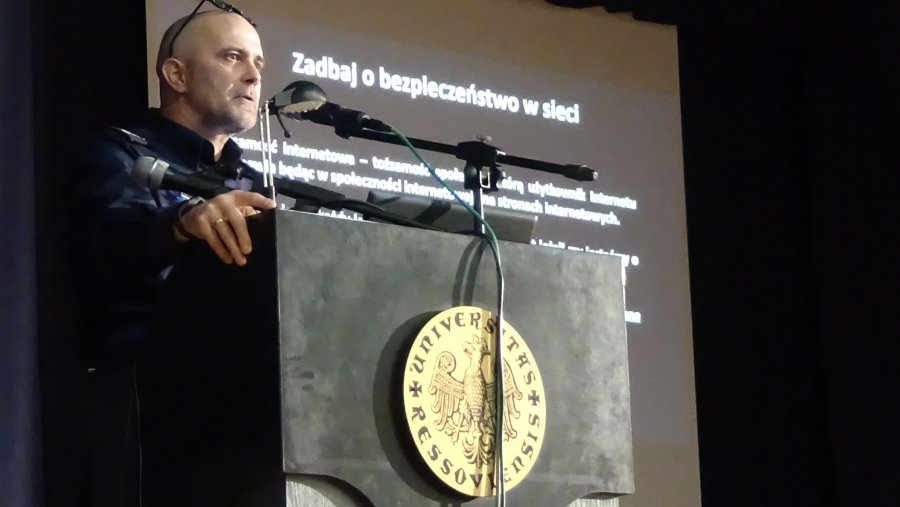 Asp. szt. Bogusław Tajchman z Wydziału do Walki z Cyberprzestępczością Komendy Wojewódzkiej Policji w Rzeszowie, spotkał się wczoraj ze słuchaczami Uniwersytetu Trzeciego Wieku. Spotkanie miało na celu uświadomienie osobom starszym, jakie zagrożenia niesie za sobą korzystanie z Internetu, a w szczególności posługiwanie się nowoczesnymi środkami płatniczymi w sieci.