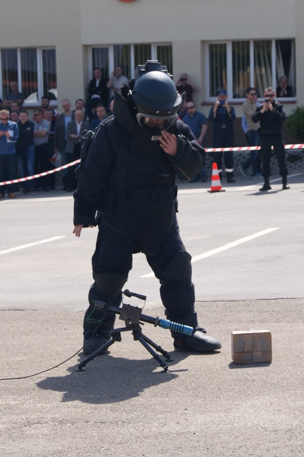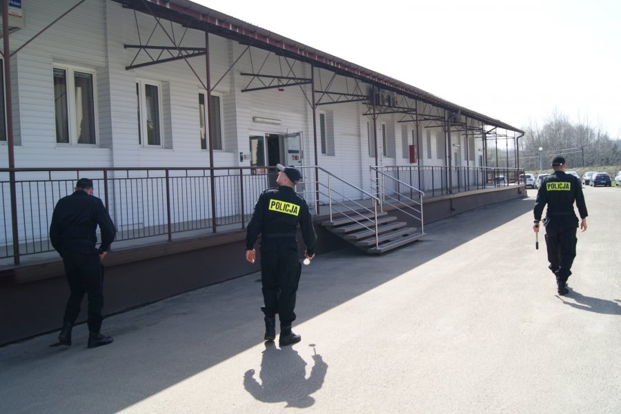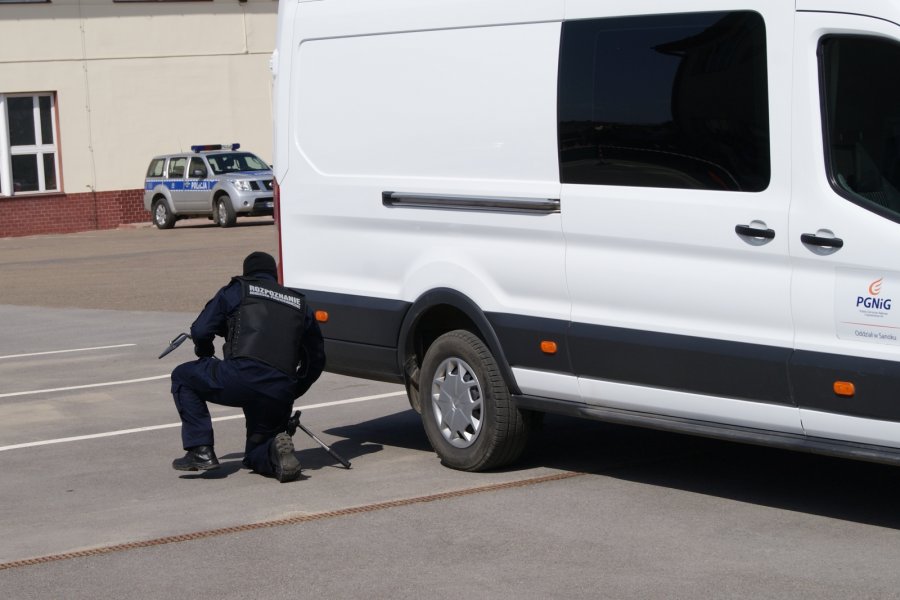 Trzecią, praktyczną część szkolenia zrealizowano wspólnie ze Sztabem Policji KWP w Rzeszowie i komendą powiatową w Sanoku. Scenariusz zakładał działania służb w sytuacji podłożenia niebezpiecznego ładunku oraz przeprowadzenia ewakuacji pracowników przedsiębiorstwa.