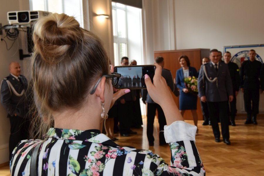 W tej wyjątkowej uroczystości funkcjonariuszom towarzyszyli ich bliscy, ale również ich przełożeni - komendanci miejscy i powiatowi.
