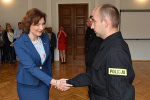 Po wypowiedzeniu roty ślubowania, funkcjonariusze z rąk insp. Moskwy odebrali legitymacje służbowe. Gratulacje i życzenia przekazała im również Wojewoda Podkarpacki Ewa Leniart, która podkreśliła, że rozpoczynają służbę w wyjątkowym czasie, w roku, w którym obchodzimy 100-lecie Odzyskania Niepodległości. Na koniec, tekst modlitwy odczytał duszpasterz podkarpackich policjantów ks. Marek Buchman.
