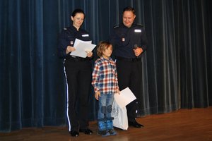 W Wojewódzkim Domu Kultury w Rzeszowie odbyło się dziś uroczyste wręczenie nagród zwycięzcom konkursu i dzieciom wyróżnionym. Nagrody laureatom wręczyli - nadkom. Łukasz Gliwa - Pełnomocnik Komendanta Wojewódzkiego Policji w Rzeszowie ds. Ochrony Praw Człowieka KWP w Rzeszowie, sierż. szt. Monika Skawińska - Berkowicz z Wydziału Komunikacji Społecznej KWP w Rzeszowie oraz dr Izabela Fac reprezentująca Wiceprzewodniczącego Sejmiku Województwa Podkarpackiego.