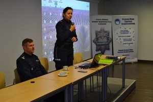 Następnie sierż. szt. Karolina Dykas z Wydziału Prewencji Komendy Wojewódzkiej Policji w Rzeszowie omówiła sposoby unikania zagrożeń w przestrzeni publicznej. Przekazała również informacje, jakich sytuacji należy unikać, aby nie stać się ofiarą przestępstwa. Wyjaśniła sposoby działania przestępców w stosunku do osób starszych oraz przekonywała zgromadzonych do właściwych i bezpiecznych zachowań.