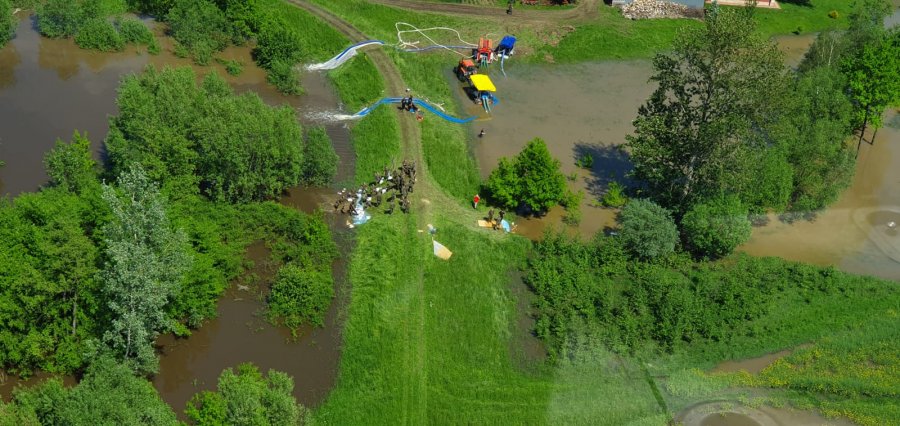 Policyjne radiowozy patrolują tereny dotknięte powodzią. Tam, gdzie przejazd samochodów, jest niemożliwy policjanci organizują objazdy. Od piątku w akcji uczestniczył policyjny śmigłowiec Black Hawk, który z góry monitorował sytuację na zagrożonym obszarze.