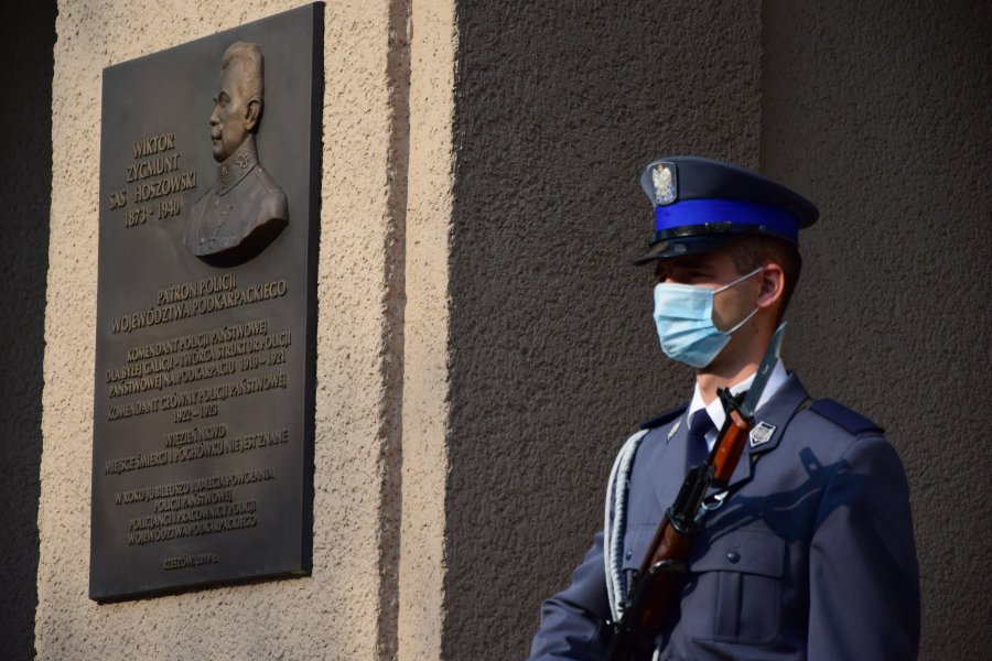Na froncie budynku Komendy Wojewódzkiej Policji w Rzeszowie znajdują się trzy tablice upamiętniające: Wiktora Sas Hoszowskiego patrona podkarpackiej Policji, który najprawdopodobniej został zamordowany wiosną 1940 r. w jednym z sowieckich więzień, policjantów pomordowanych w obozach jenieckich na Wschodzie oraz wszystkich tych, którzy zginęli na służbie.
