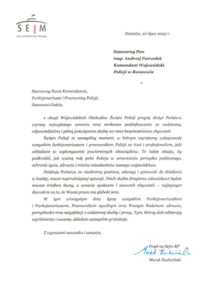 - Podziękowania i życzenia od Marka Kuchcińskiego - Posła na Sejm RP