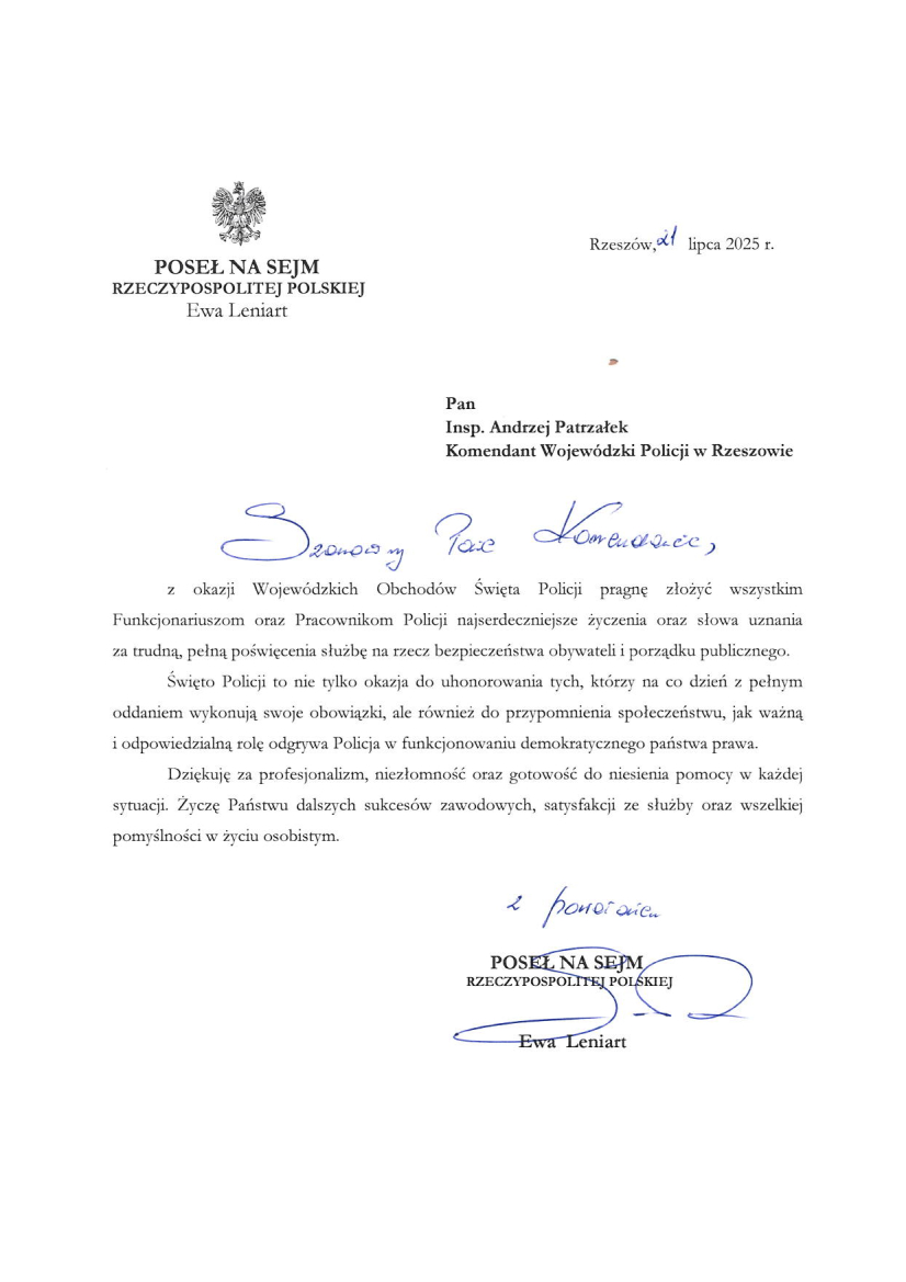 Podziękowania i życzenia od Ewy Leniart - Posła na Sejm RP - Podziękowania -