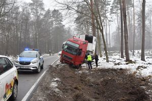 Policjanci z posterunku w Wiązownicy pracowali na miejscu zdarzenia drogowego, do którego doszło w Mołodyczu. Jak wynika z ustaleń policjantów, 26-letni kierowca ciężarowego volvo prawdopodobnie wpadł w poślizg i wjechał do przydrożnego rowu. Mężczyzna został przetransportowany do szpitala. Funkcjonariusze wyjaśniają dokładne okoliczności tego zdarzenia.